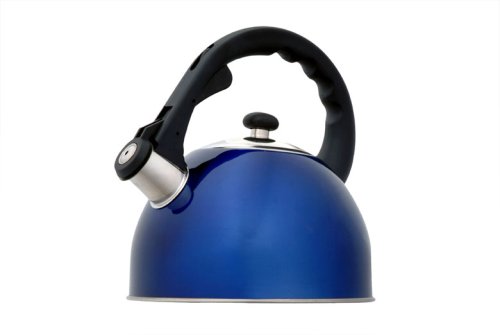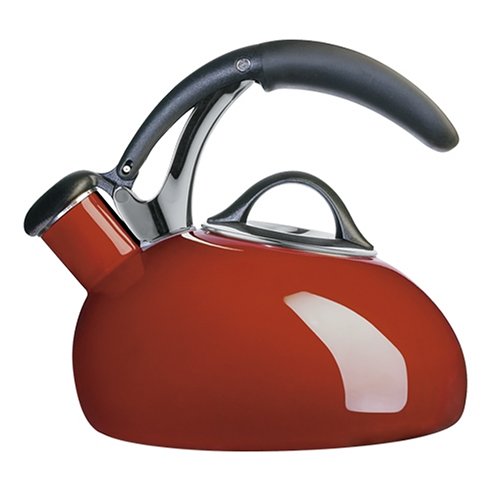 You won't let the water run dry when you hear the whistle of this tea kettle. Le Creuset constructs the traditional shape out of lightweight, sturdy steel and coats it with tough enamel. A shiny stainless-steel rim helps protect the edge from chipping and facilitates the lid positioning. The high handle can be locked in an upright position to keep your hand away from the heat, and a lever on the whistling device flips the spout open for pouring. Low and broad, the base allows maximum surface contact for faster boiling. Choose from many bright, modern colors to match or harmonize with your kitchen and other Le Creuset cookware. --Ann Bieri